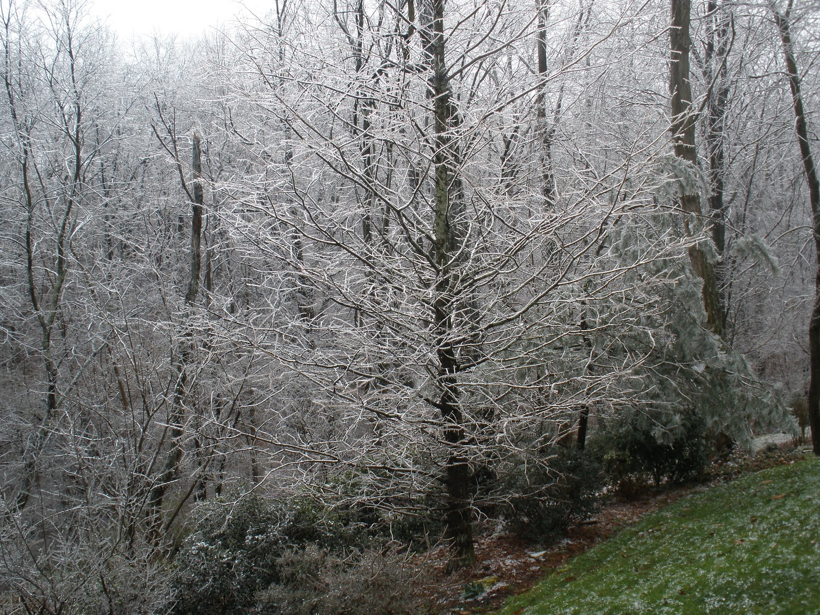 The woods were a filigree of shiny ice coatings. A few branches were down, but fortunately this was not a severe ice storm that leaves a grotesque aftermath of downed trees and broken limbs.
